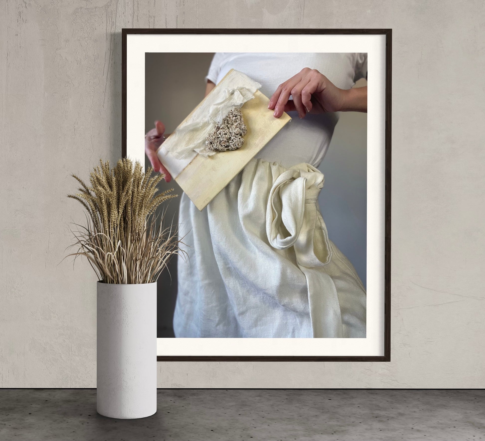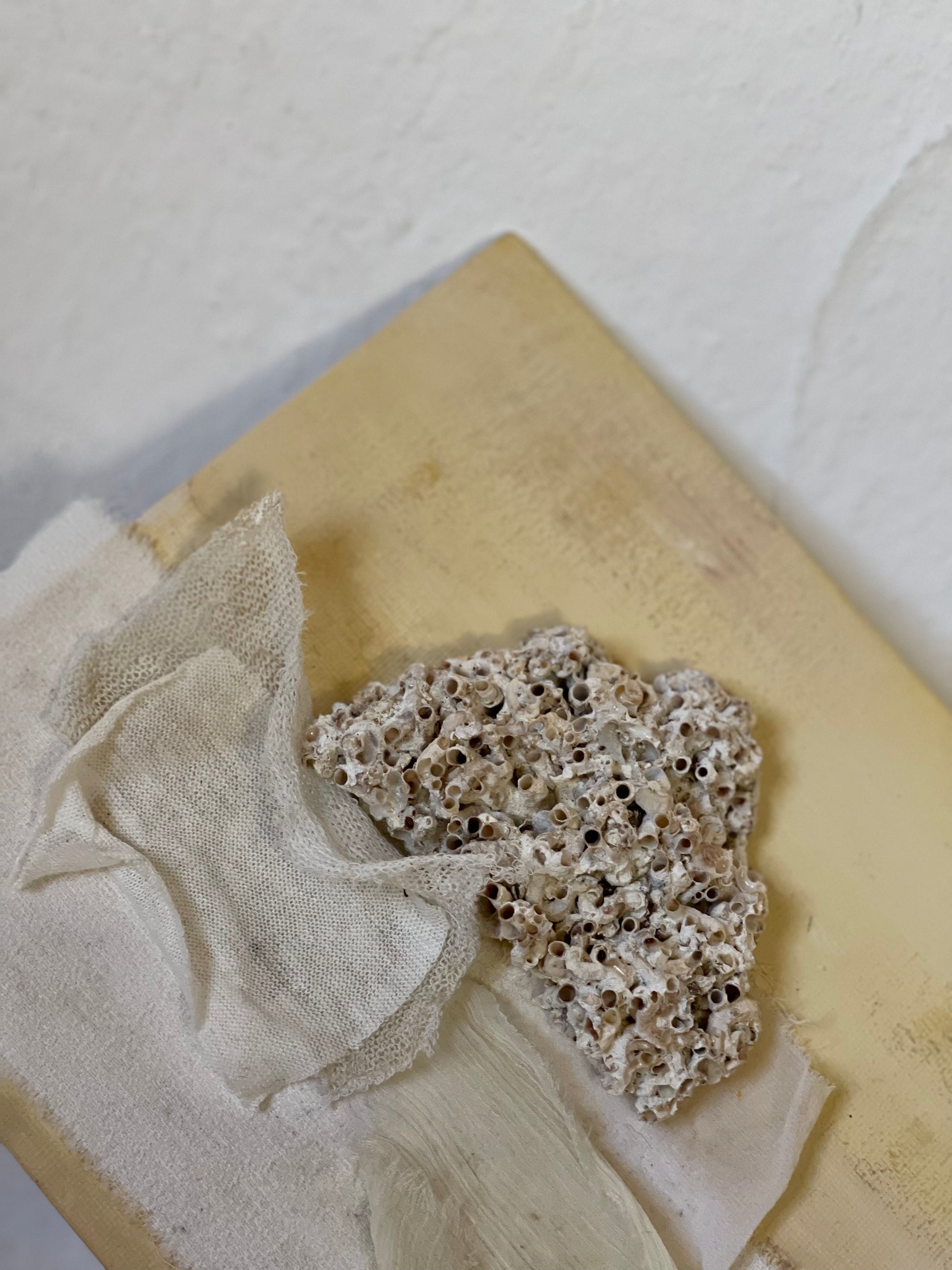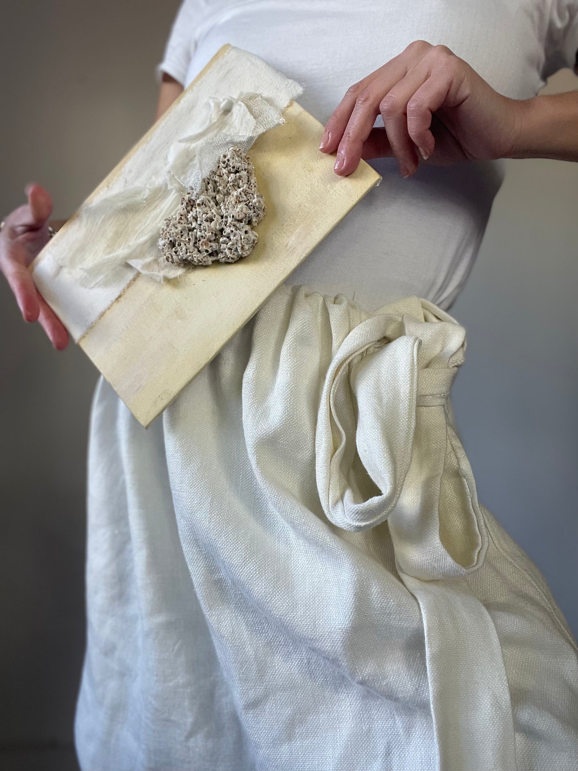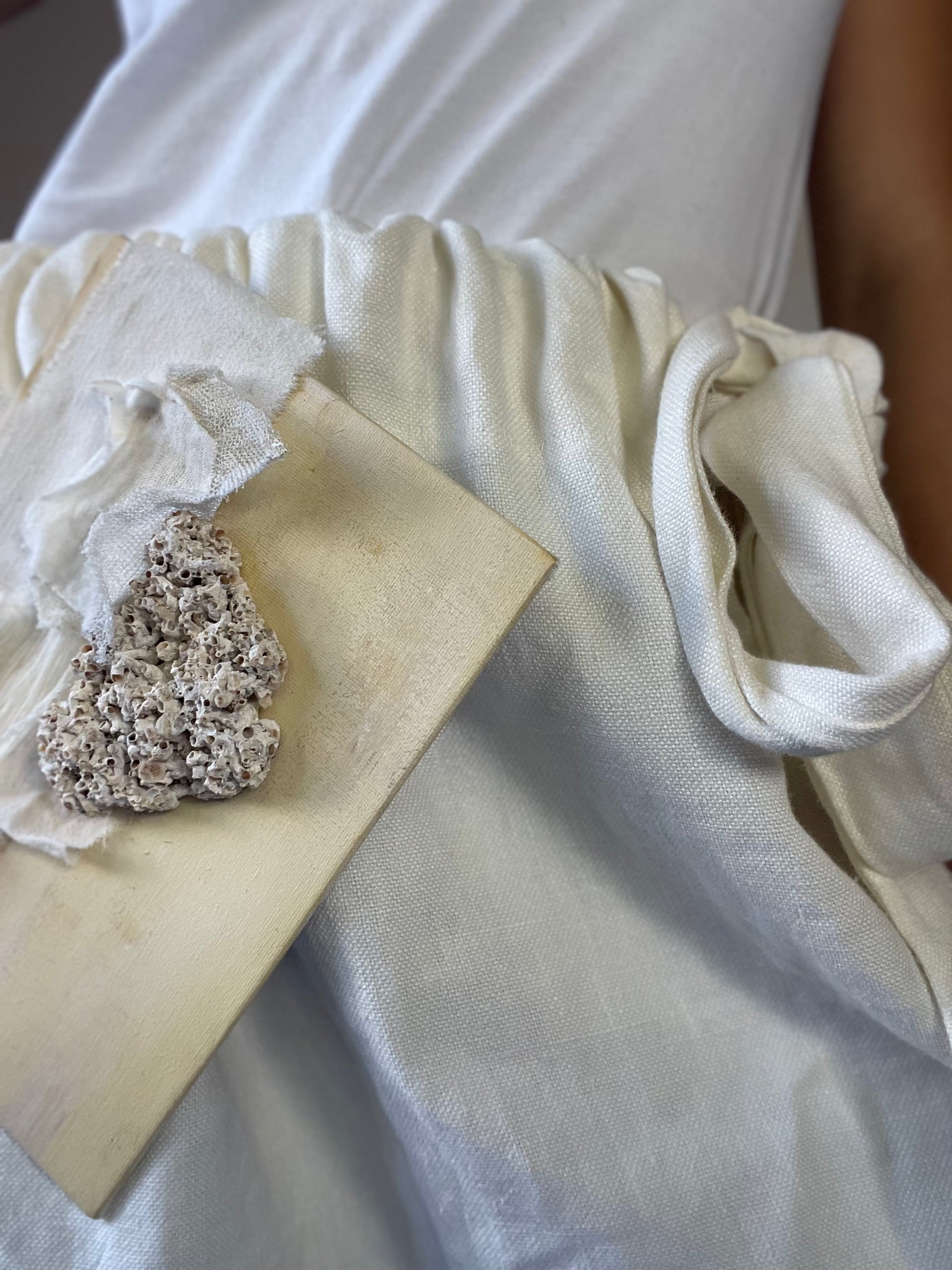 It was inspired and created by nature. It is a mix of fabrics and precious objects that nature has given us.